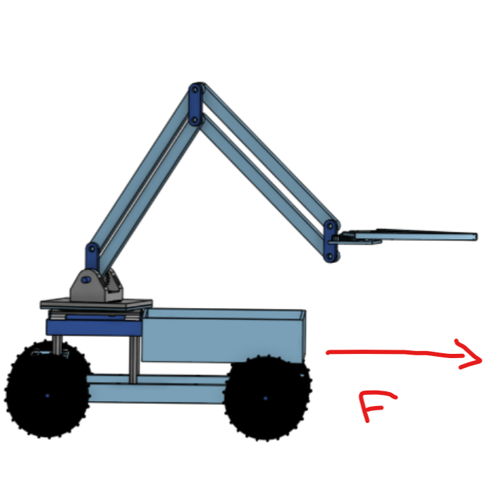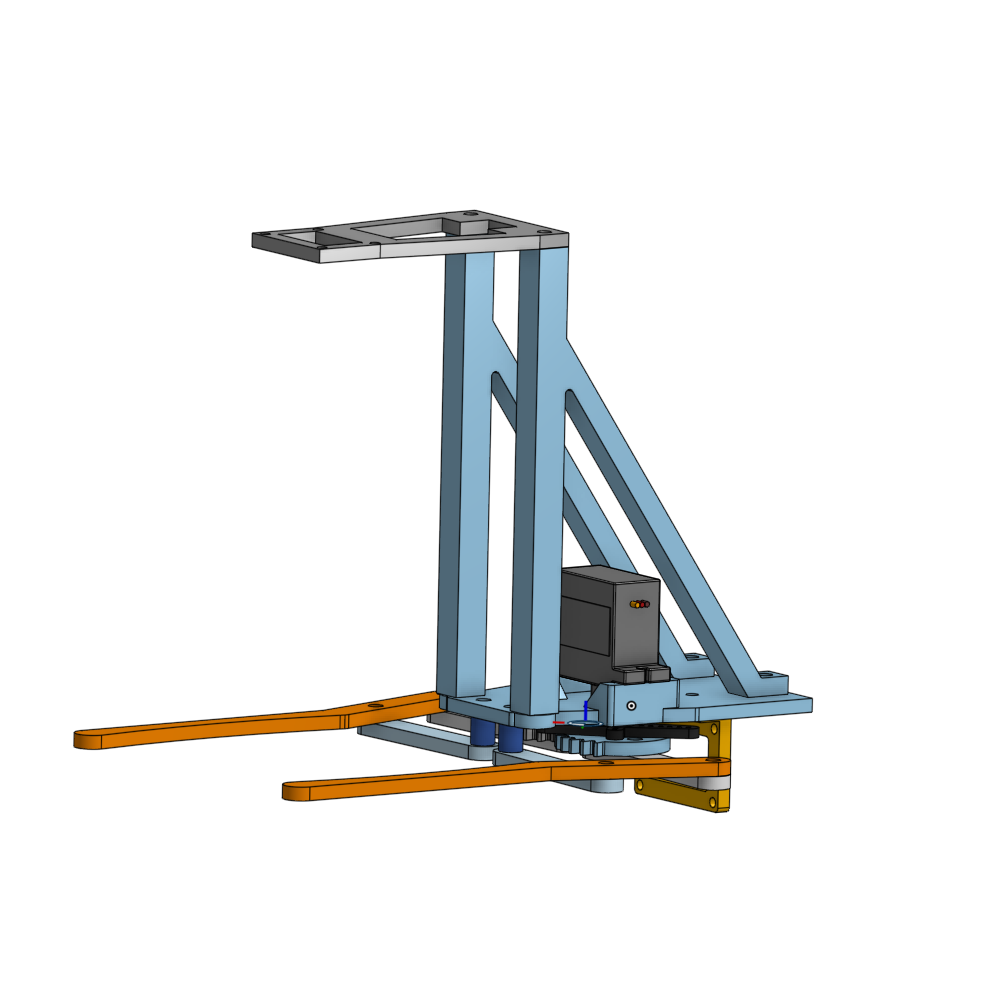 The design and execution of the arm was one of the major challenges that I focused on. The basic concept agreed upon from the start was two motors at the “shoulder” joint (for azimuth and up/down rotation), one at the “elbow”, and one at the “wrist” (for up and down rotation of the wrist). It was suggested by mentors to use a worm gear design at the shoulder, to apply a large gear reduction and passively “hold up” the shoulder instead of stalling the motor, but in the final design an off the shelf gearbox is used. The other major change was to switch to a 4-bar linkage to decrease the moment placed on the shoulder and elbow motors.